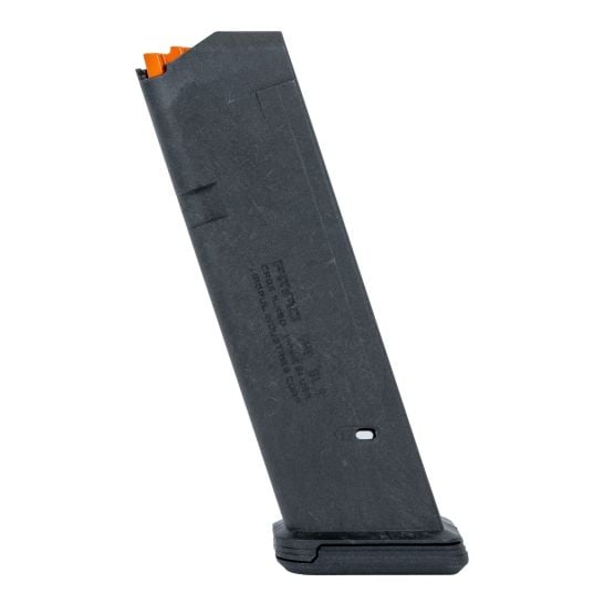 The PMAG 17 GL9 is a 17-round Glock 9mm handgun magazine featuring a new proprietary all-polymer construction for flawless reliability and durability over thousands of rounds. High visibility anti-tilt follower, stainless steel spring, easily removable floorplate for cleaning, paint pen dot matrix for mag marking, ridged floorplate edges for better grip, and 17rd indicator windows. Drops free loaded or unloaded. All with the same boring reliability you expect from an OEM magazine.