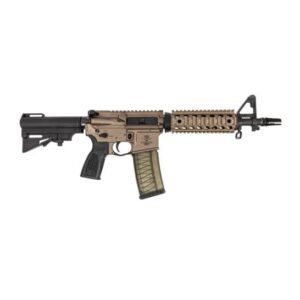 Barrel: 10.5″ barrel chambered in 5.56 NATO with a 1/7 twist, M4 barrel extension, and a carbine-length gas system. Barrel is finished off with an F-marked front sight post, quad rail handguard with rail covers, and an A2 flash hider.