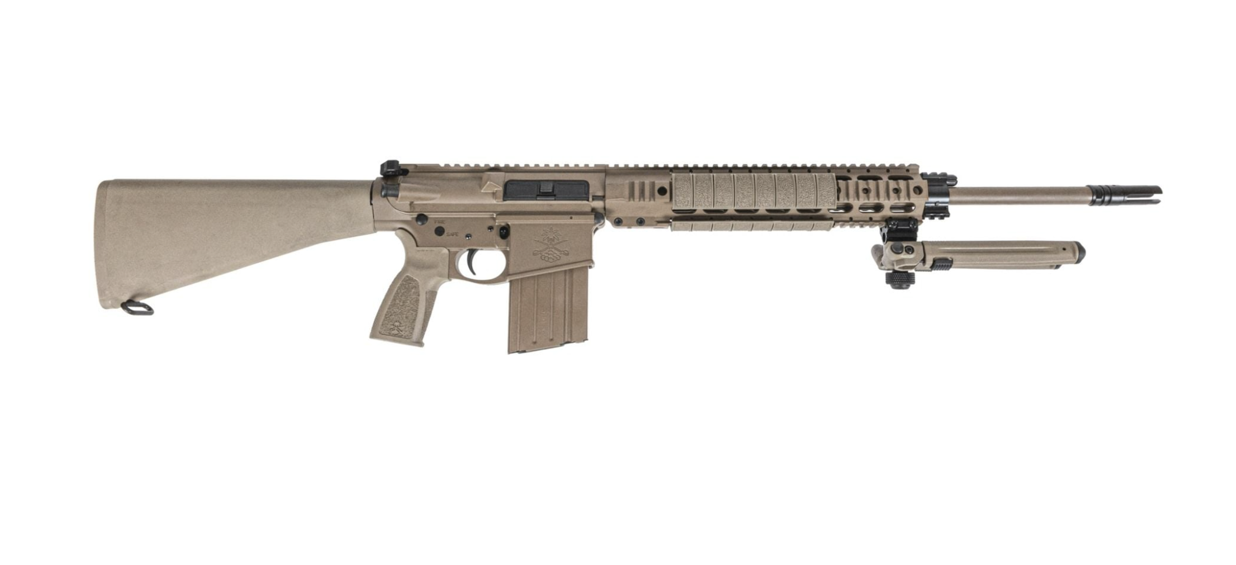 Lower: Sabre-10 lower with FDE A1 stock and FDE Sabre grip. FDE cerakote finish. Marked multi-caliber. Comes Standard with PSA Buffer Spring, Sabre 2-Stage DLC Trigger, and Anti-Walk Pins.