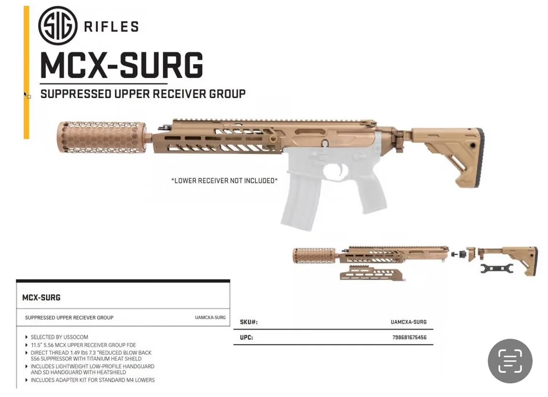 SIG SAUER is proud to introduce the MCX-SURG (Suppressed Upper Receiver Group) Upgrade Kit. Designed to meet the highly-specialized needs of USSOCOM, the MCX-SURG Kit was developed to deliver extreme performance for special operations units while maintaining high-levels of accuracy and durability.